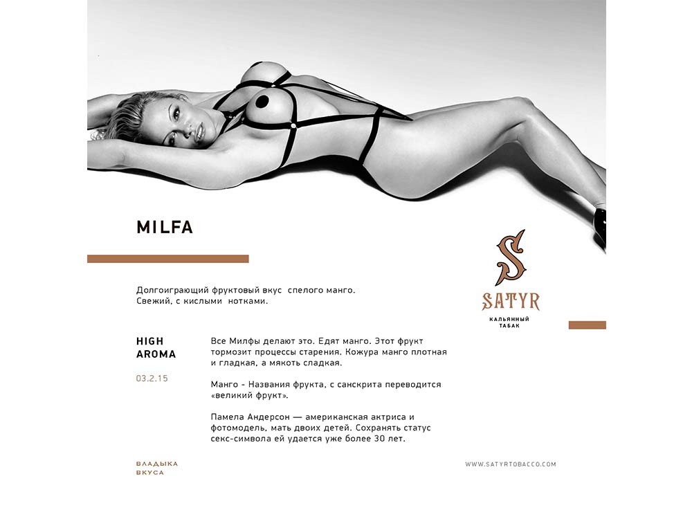 Главная » Каталог продукции » Satyr 100g » Satyr Aroma Line - Milfa 100g
